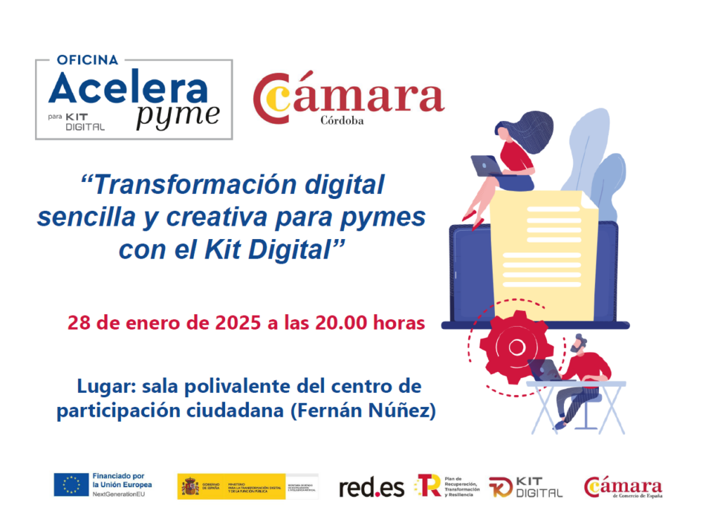 La oficina Acelera pyme de la Cámara de Comercio de Córdoba, puesta en marcha en colaboración con la entidad pública Red.es y cofinanciada por los fondos europeos Next Generation EU del Plan de Recuperación, organiza junto con la asociación de empresarios y autónomos de Fernán Núñez el próximo 29 de enero a las 20.00 horas…