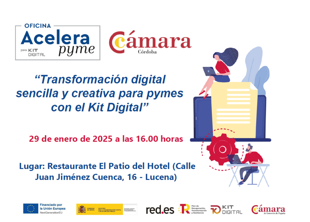 La oficina Acelera pyme de la Cámara de Comercio de Córdoba, puesta en marcha en colaboración con la entidad pública Red.es y cofinanciada por los fondos europeos Next Generation EU del Plan de Recuperación, organiza el próximo 29 de enero a las 13.45 horas en el salón de plenos de la Cámara de Comercio de…