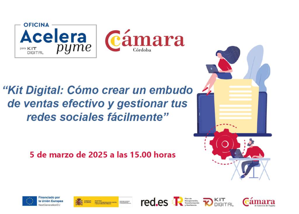 La oficina Acelera pyme de la Cámara de Comercio de Córdoba, puesta en marcha en colaboración con la entidad pública Red.es y cofinanciada por el Plan de Recuperación, Transformación y Resiliencia a través de los fondos NextGenerationEU en el marco de la agenda España Digital 2026 y el Plan de Digitalización de Pymes 2021-2025, organiza…