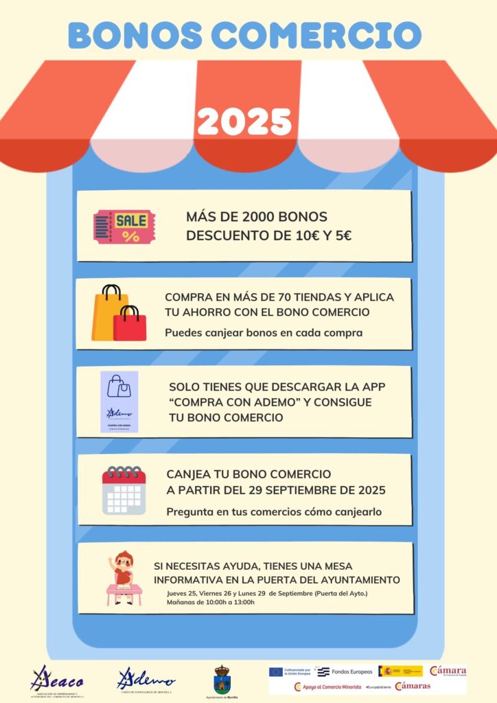 El Centro Comercial Abierto de Montilla, a través de AEACO, ha desarrollado junto a la Cámara de Comercio de Córdoba la campaña “difusión de las ventajas de la aplicación de fidelización Compra con ADEMO”, una actuación financiada por Fondos FEDER y la Secretaría de Estado de Comercio a través del Programa de Comercio Minorista 2025…