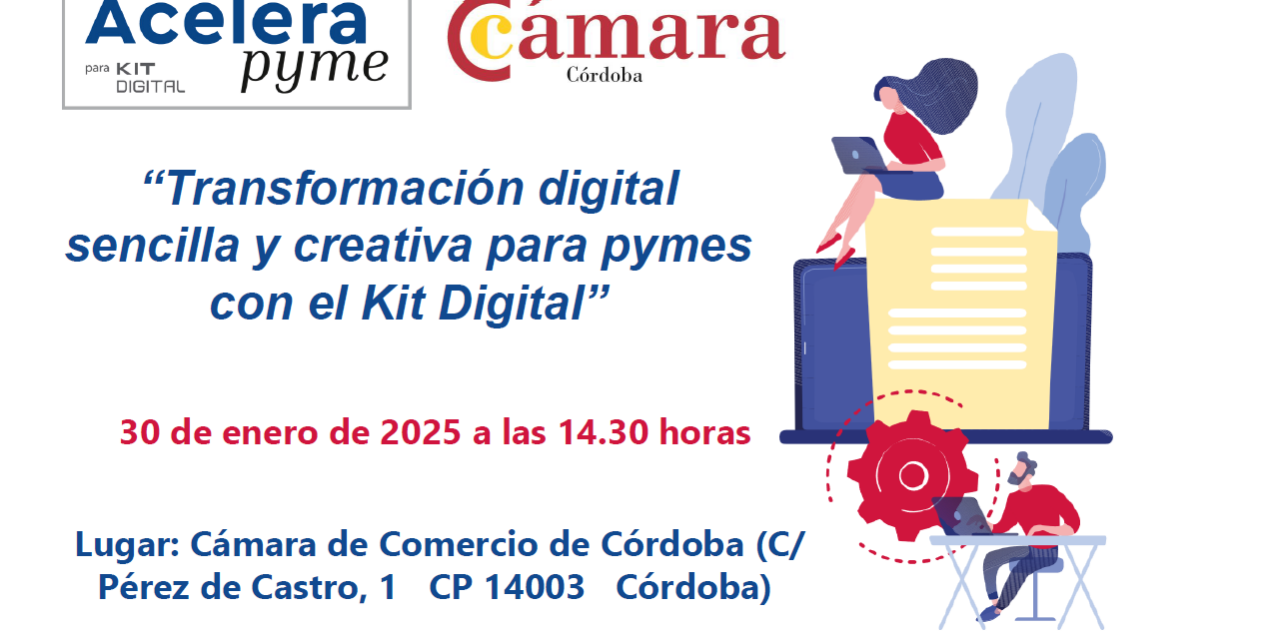 La oficina Acelera pyme de la Cámara de Comercio de Córdoba, puesta en marcha en colaboración con la entidad pública Red.es y cofinanciada por los fondos europeos Next Generation EU del Plan de Recuperación, organiza junto con la asociación amigos comerciantes del centro de Córdoba «Iluminando juntos» el próximo 30 de enero a las 14.30 horas en la Cámara de Comercio de Córdoba (C/ Pérez de Castro, 1 CP 14003 Córdoba) el taller “Transformación digital sencilla y creativa para pymes con el Kit Digital».
